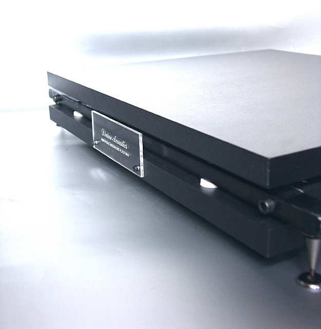 Platforma składa się z trzech elementów głównych, zbudowanych z różnych materiałów. Są one od siebie wzajemnie izolowane. Element górny to trójwarstwowa płyta, składająca się z materiałów o różnych gęstościach. Tworzą ją pokryte czarnym akrylem płyty z MDF i HDF, przedzielone warstwą tłumiącą. Element górny spoczywa na trzech regulowanych stożkach, rozstawionych w układ trójkąta równoramiennego. Geometryczny środek trójkąta, który tworzą stożki, nie pokrywa się ze środkiem ciężkości elementów głównych oraz całej platformy. Stożki znajdują oparcie w elemencie dolnym, wykonanym z płyty MDF o grubości 20mm, także pokrytym czarnym akrylem. Jest to element o największej masie, podwieszony pod środkowym elementem głównym. Elementy te stykają się ze sobą za pośrednictwem materiału tłumiącego w ośmiu punktach.